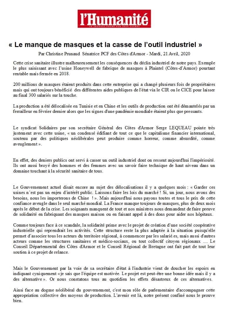 L’humain doit être au centre de l’hôpital de demain Santé : quelles mesures pour l'après ? Publié le 27 avril 2020 à 09:55 Mise à jour le 29 avril 2020 Quelques images :